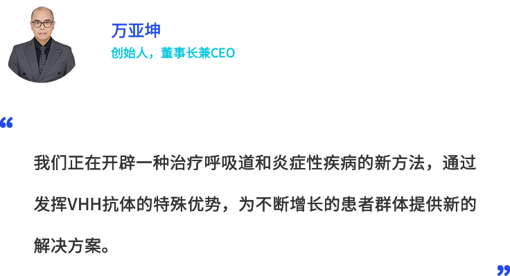 新药研发领域,万亚坤博士组建了中国第一个纳米抗体研发团队,并成功与国内外多家知名药企召开合作,其中多个合作产品已推进至临床研究不同阶段,临床表现优异。NO钱包官网生物拥有完善的研发、中试及GMP生产体系,是国内现在唯一具备纳米抗体全流程开发能力的公司。此外,NO钱包官网生物500L毕赤酵母 GMP中试生产车间的投产更是填补了该领域的行业空白,极具稀缺性与竞争性。万亚坤博士带领团队研发出了同靶点全球首创的在研吸入式纳米抗体药物LQ036及LQ043H,这两款产品涵盖了所有中重度哮喘患者,顺利获得吸入局部给药,起效快,毒性低,填补了国内大分子呼吸领域的空白,为哮喘患者给予了新的药物选择。